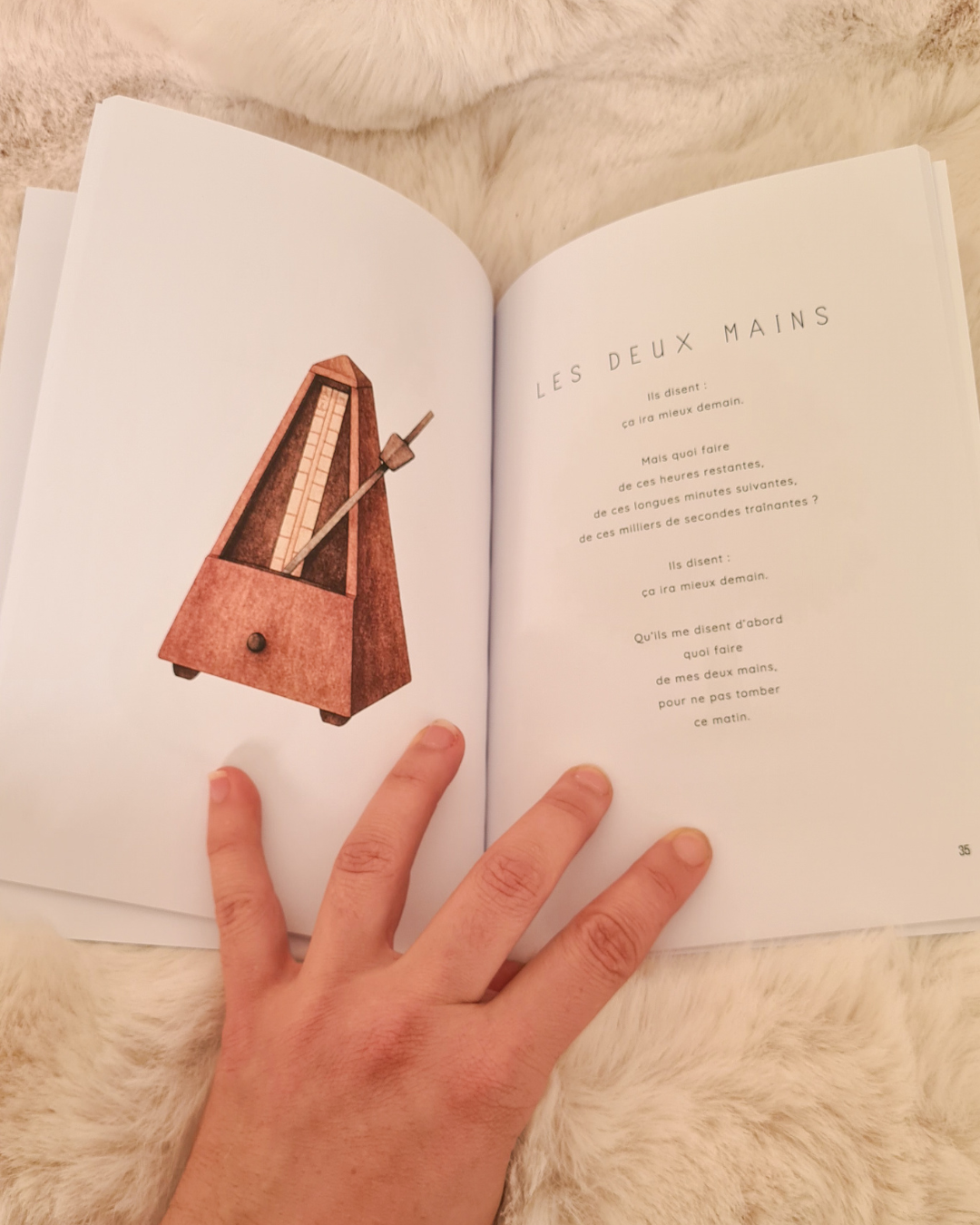 Sous mon hêtre est un recueil au format A5 de 68 pages, composé de 21 textes poétiques, chacun accompagné d’une illustration en aquarelle. Un livre à lire à petites gorgées, à garder près de soi.